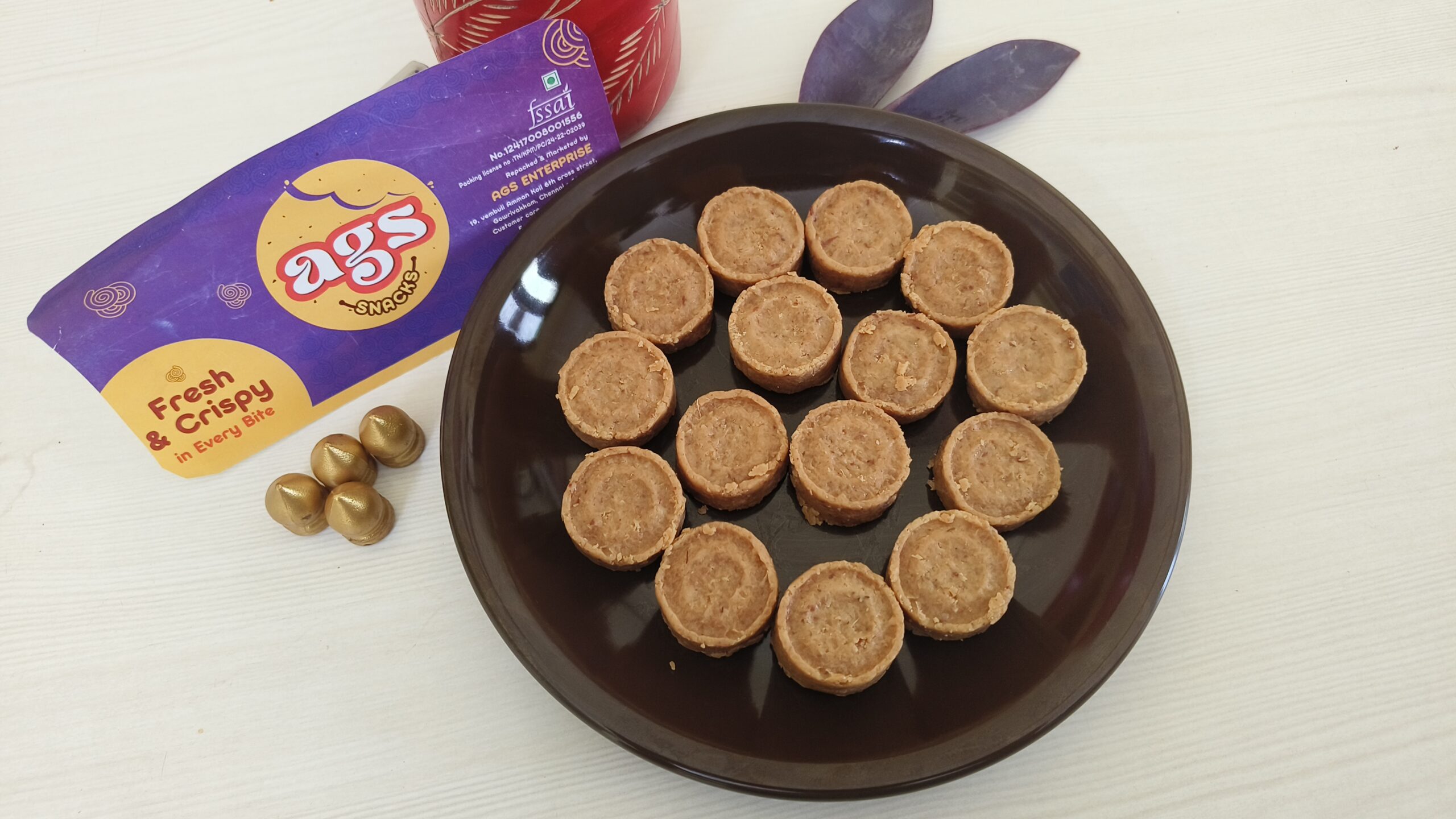 AGS Snacks Coconut Burfi is a healthy sweet snack made with Dry Roasted Coconuts, jaggery, sukku, ellachi and making a Coconut burfi. The Coconut burfi will be also called as Thangka Mutai. Every bite feels best south Indian traditional taste & sweet. AGS Snacks packed with love and care with no added preservatives & 100% vegetarian.