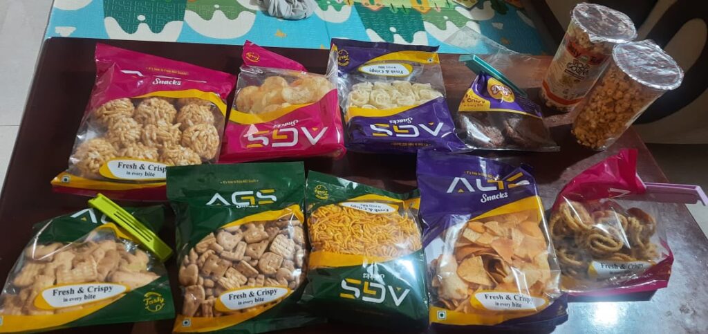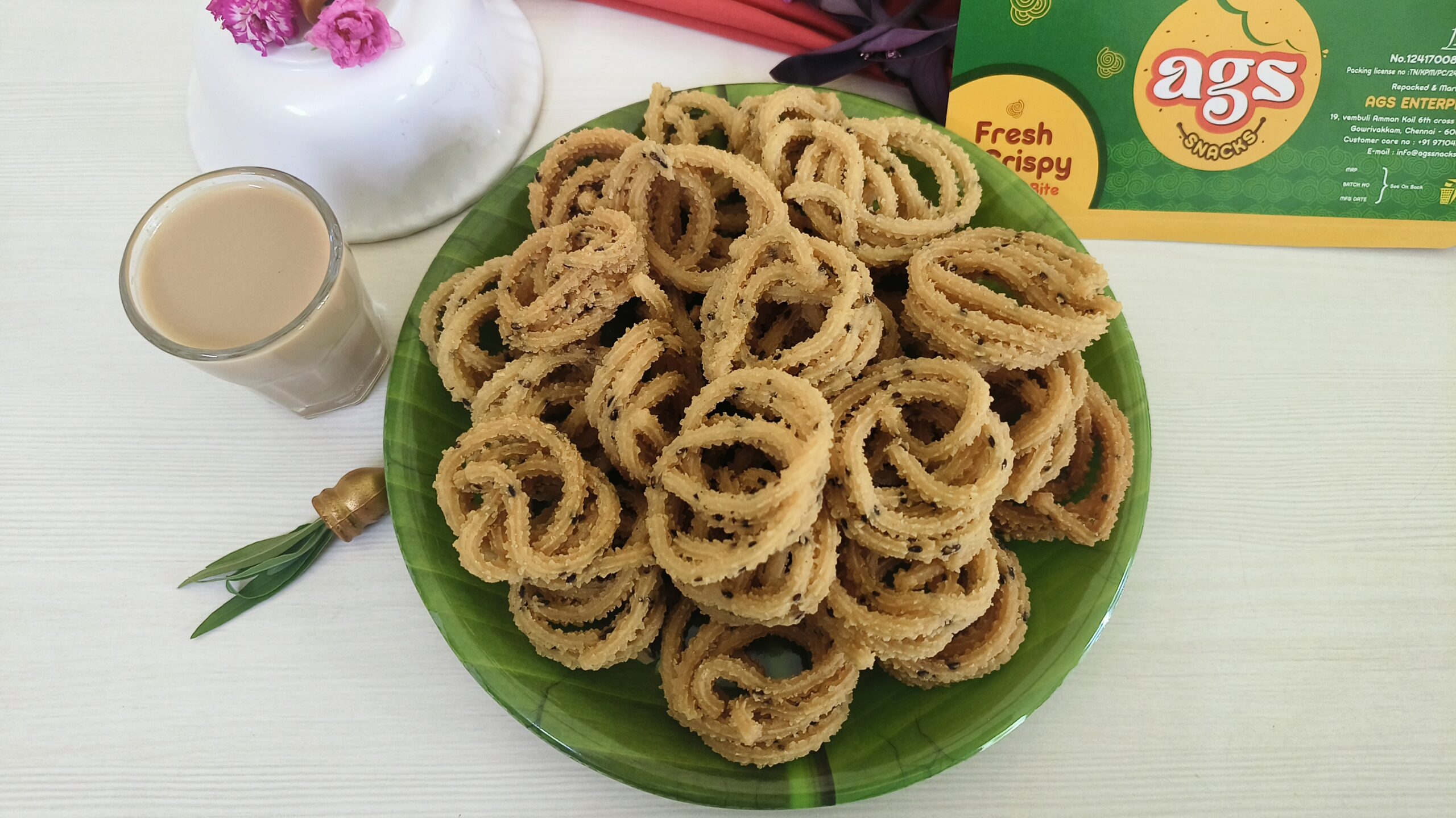 AGS Snacks Manapaarai Muruku is a fresh & crispy and delicious snack made with Rice flour mixed gram flour sesame seeds with soft dough and making a tasty Muruku. Every bite feels best south Indian traditional taste & aroma. AGS Snacks packed with love and care with no added preservatives & 100% vegetarian.