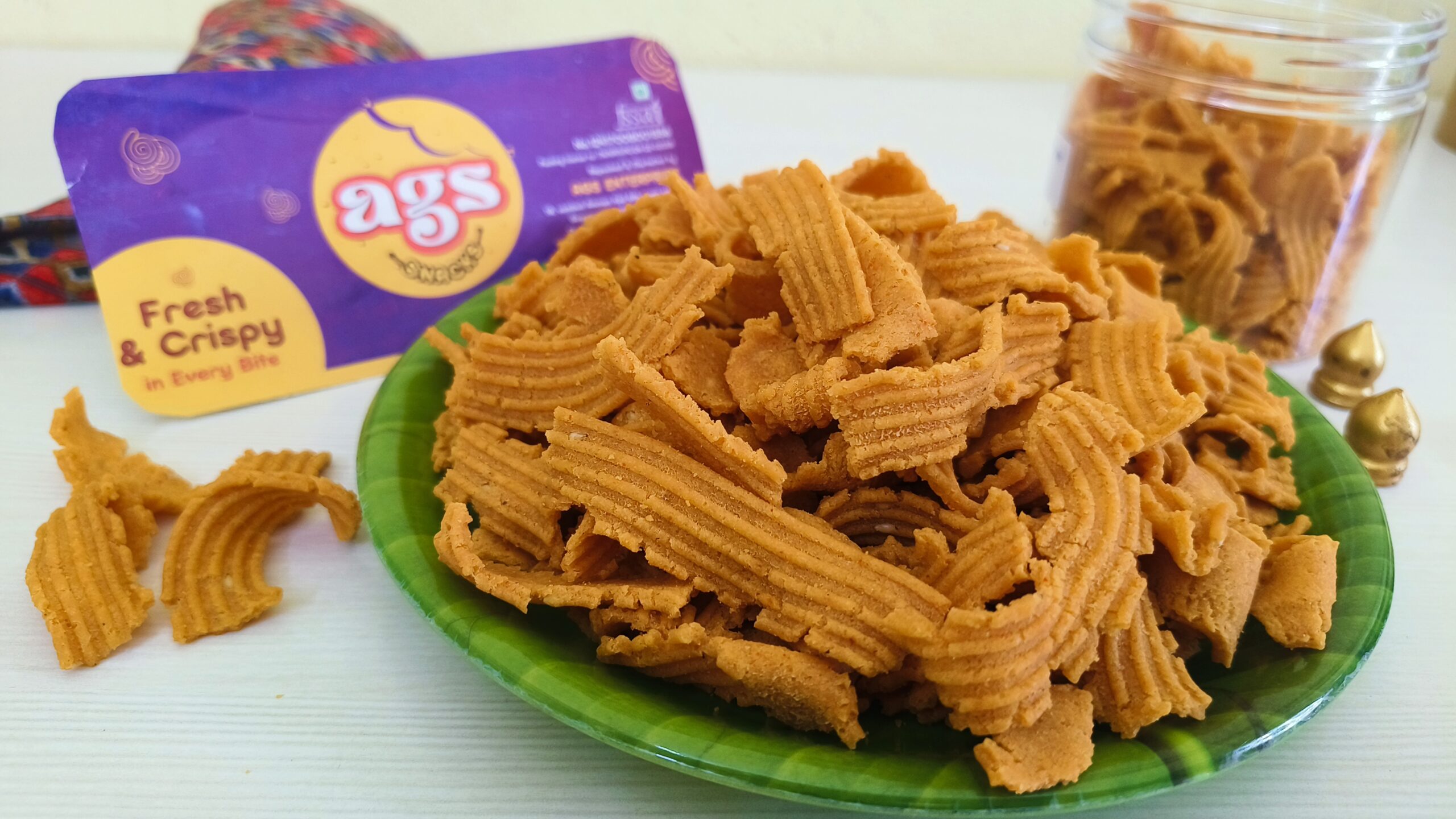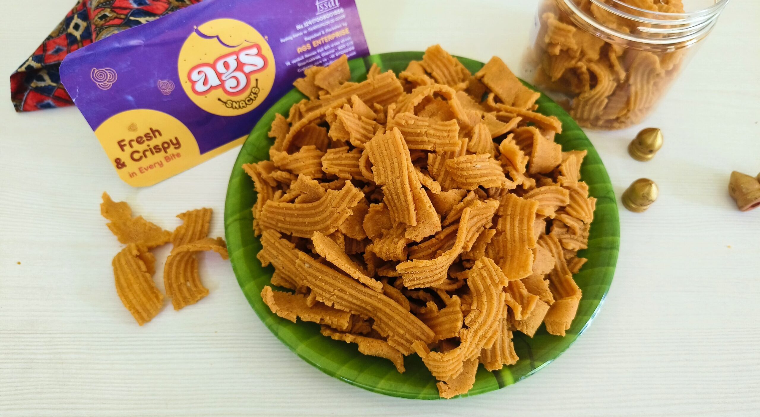 AGS Snacks Ribbon pakoda is a fresh & crispy and delicious snack made with Gram Flour, rice flour, Garlic, Sesame seeds with soft dough and making a tasty Ribbon pakoda. Every bite feels best south Indian traditional taste & aroma. AGS Snacks packed with love and care with no added preservatives & 100% vegetarian.