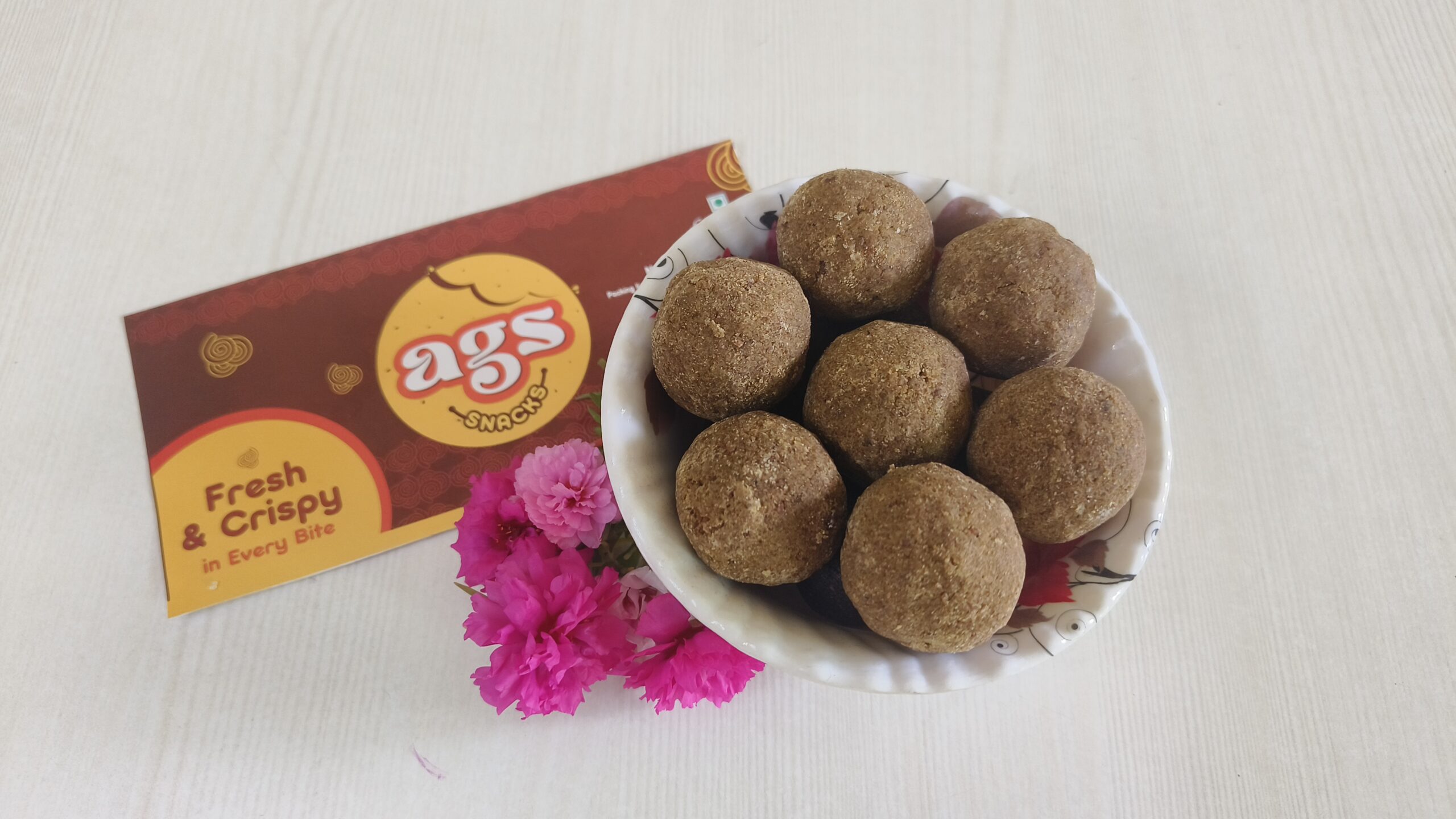 AGS Snacks Sathumavu Urundai is a healthy delicious sweet made with Ragi flour, Corn flour, rice flour, Black flour, brown sugar, Ghee, caradamom and making with delicious Sathumavu Urundai. This Urundai will always gives us rich taste and tremendous protein content. AGS Snacks packed with love and care with no added preservatives & 100% vegetarian.